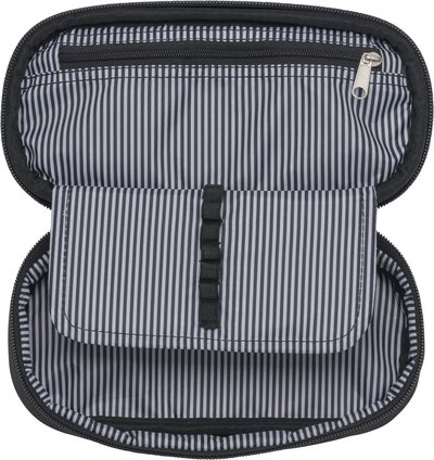 Erdvus ir patogus ovalo formos penalas, skirtas palaikyti tvarką tarp rašymo priemonių. Jame yra atskira dalis dažniausiai naudojamiems pieštukams ir vidinė užtraukiama kišenėlė smulkmenoms.