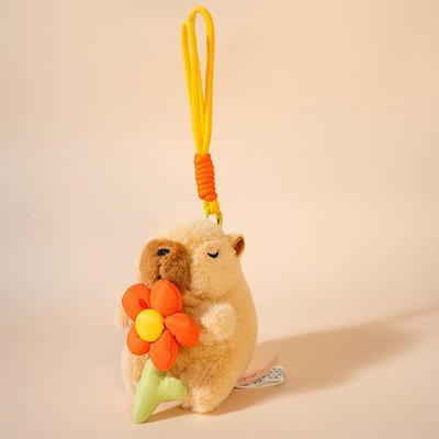 Miela kapibara su gėlyte — švelnus aksesuaras, suteikiantis lengvumo ir geros nuotaikos.