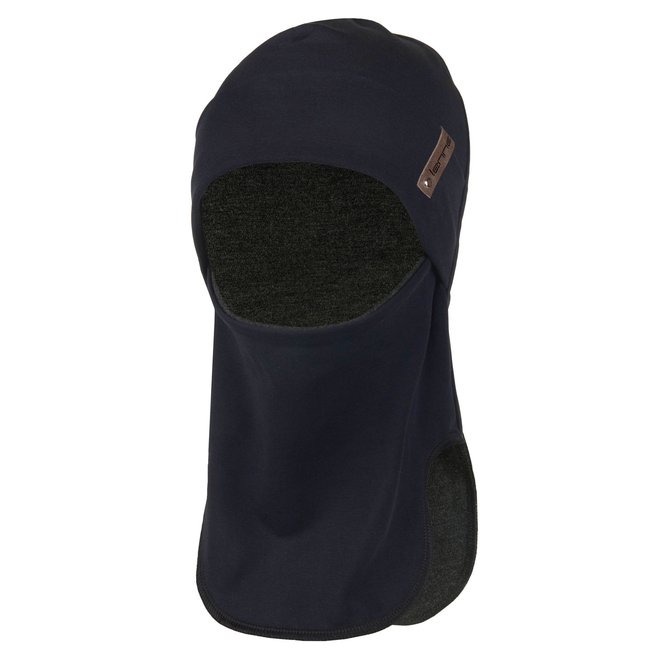 Pagaminta iš medvilnės mišinio audinio, kaukė turi merino vilnos pamušalą. Kaukės kaklo dalį galima pastumti po smakru arba nešioti aukščiau ant veido.