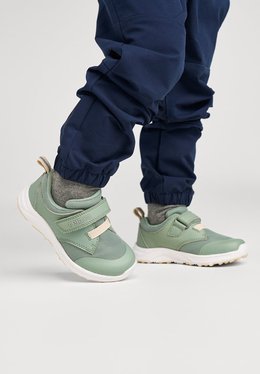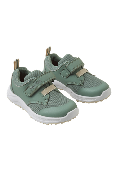 Šie „Reima“ sportiniai bateliai yra veganiški ir sujungia kvėpuojančią tekstilę su sintetinėmis medžiagomis į lengvą dizainą, skirtą aktyviems žaidimams ir kasdieniam dėvėjimui. Lipukai kartu su elastiniais raišteliais leidžia mažyliams savarankiškai apsiauti batelius ir greičiau pasiruošti. Išimami formuoti EVA vidpadžiai su trikotažo pamušalu ir „Happy Fit“ atspaudu padeda lengvai parinkti tinkamą dydį. Lankstus EVA padas su TPR sutvirtinimais užtikrina patikimą sukibimą žaidimų aikštelėse. Tekstilinis pamušalas ir šviesą atspindinčios detalės suteikia komfortą bei geresnį matomumą ankstyvą rytą ar sutemus.